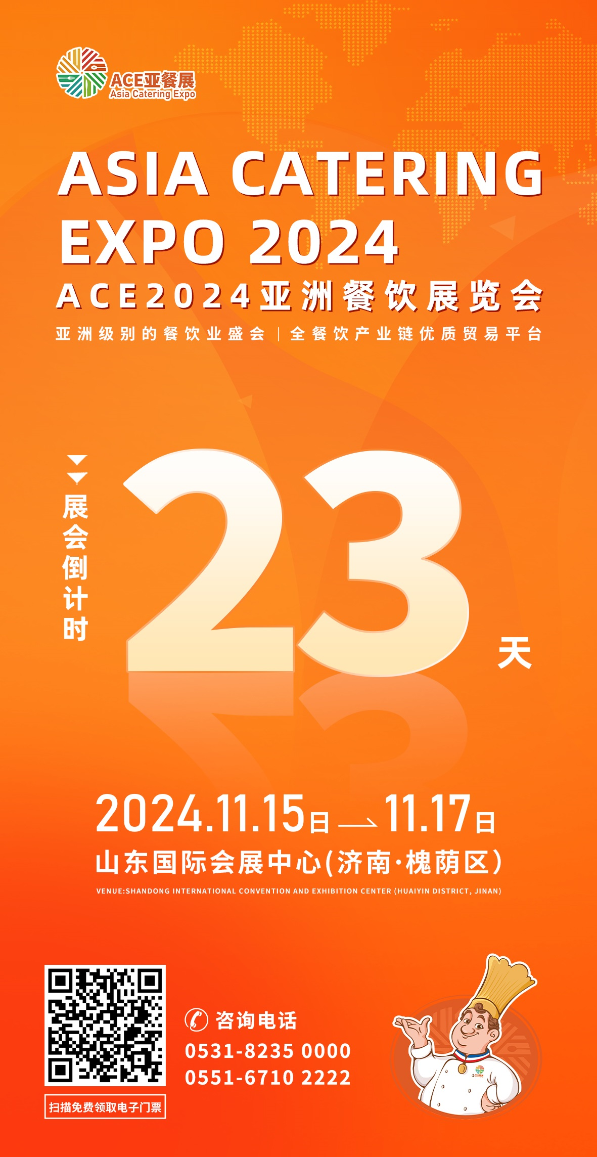 ACE2024亞洲餐飲展覽會(huì)(簡稱ACE2024亞餐展)將于11月15日在濟(jì)南市山東國際會(huì)展中心盛大開幕。展會(huì)將持續(xù)至11月17日。
